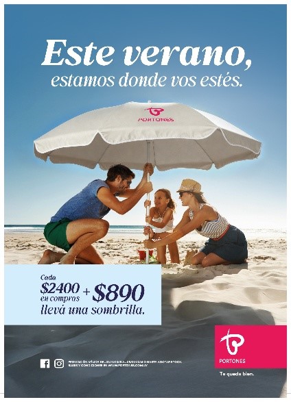 En Portones queremos acompañar cada uno de esos momentos con un beneficio pensado para disfrutar la temporada con comodidad y seguridad: una exclusiva sombrilla con protección UV +50.
